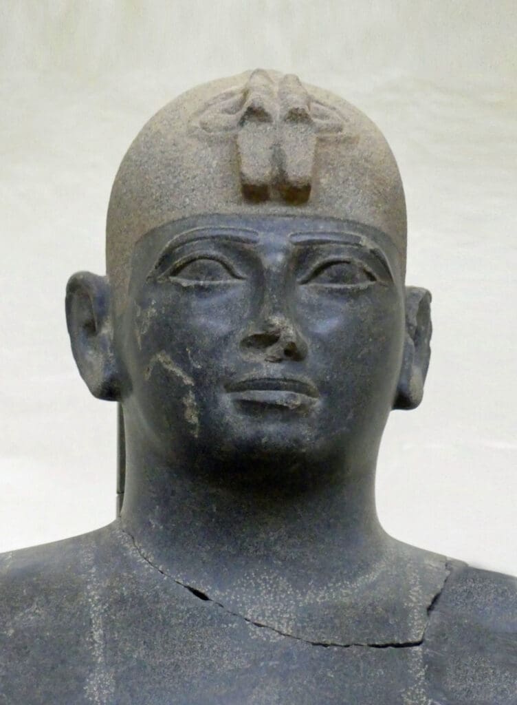 King Taharqa wearing two royal cobras on his headdress. Photo by ALFGRN, CC BY 2.5, via Wikimedia Commons