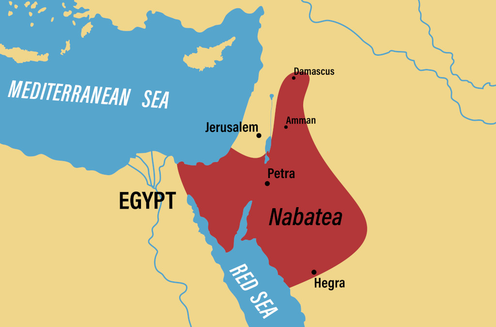 But it was also about this time that the Nabateans began to get involved in the lucrative trade in South Arabian frankincense and myrrh, the same business that had led the Queen of Sheba to visit the court of Solomon some five centuries earlier (1 Kings 10). At first, the Nabateans were little more than middlemen in the trade, simply responsible for ferrying goods on camelback from Petra to the ports of Gaza and Alexandria on the Mediterranean coast. But as their economic and political fortunes improved in the ensuing centuries, the Nabateans gained political control over all of the lands bordering the Arabian frontier, a vast territory stretching from Damascus in the north to Hegra in the south.